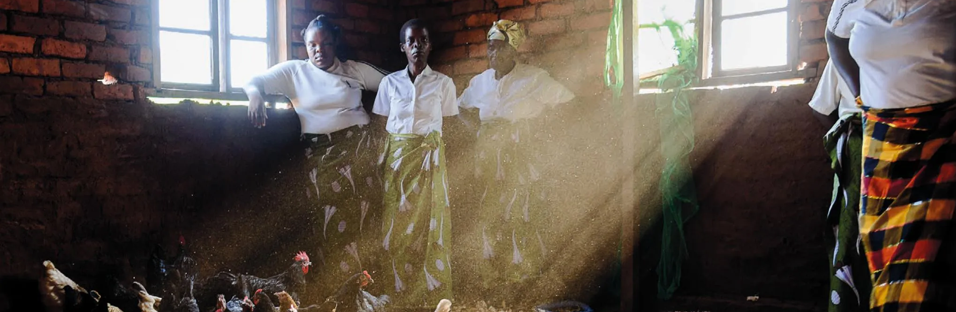 In Golden Village, the women have formed a group to breed and sell chickens. All the women in the group have daughters that go to secondary school. They use their earnings to cover the cost of schooling for their daughters. The money from two chick- ens cover the cost for a girl for an entire term. There are three terms in a school year.